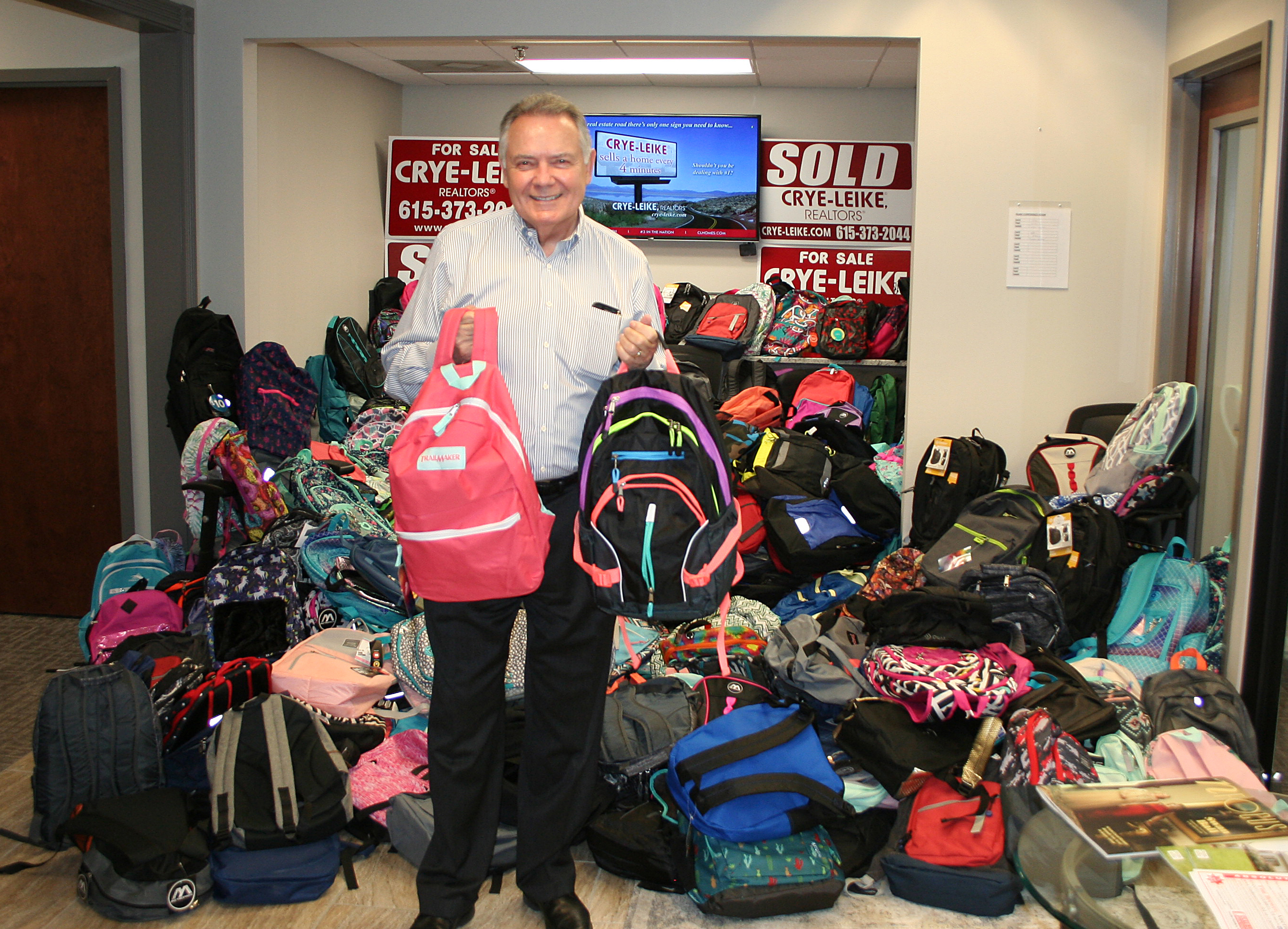 Nashville, TN: Crye-Leike Real Estate Services has teamed up with Youth Villages of Middle Tennessee to support the Backpack Heroes Program for the 19th consecutive year. This year, Crye-Leike broke its record, donating 494 backpacks full of school supplies to Youth Villages.