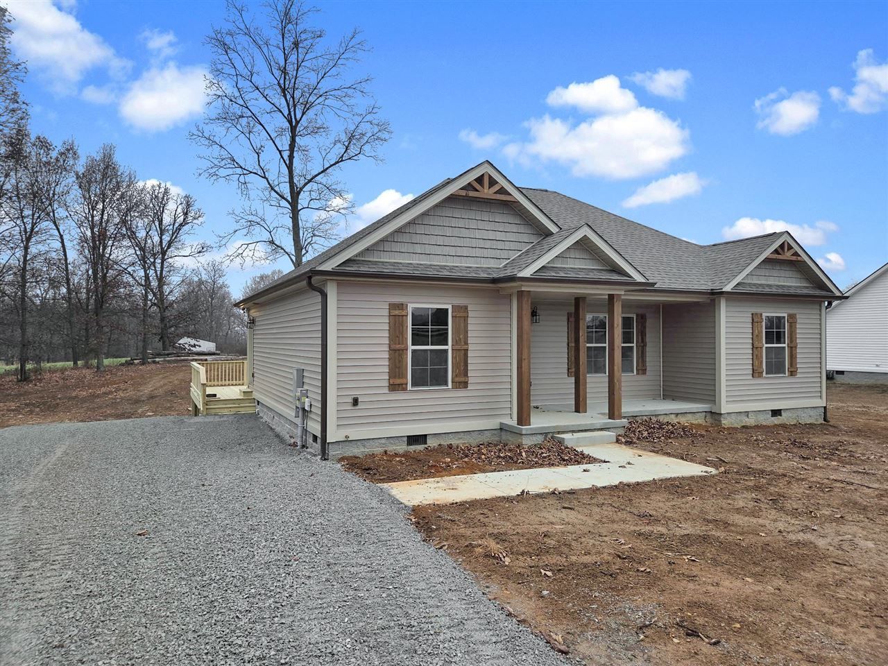 New Construction near the Simpson/Allen County line - Experience affordable living without sacrificing style. The new 3BR, 2BA home sits on a gorgeous wooded .73 acre lot and delivers the upgrades that everyone wants. Step into an open, light-filled layout featuring LVP flooring throughout, vaulted and tray ceilings and a spacious kitchen with custom cabinetry and granite countertops. The split bedroom design gives you privacy and the primary suite boasts a double-bowl vanity and large walk-in closet. Take your mornings and evenings to the next level on the large deck overlooking the backyard filled with trees. This one checks every box! Country charm, modern upgrades and convenient location- Just 15 minutes to the I-65 exit in Franklin
