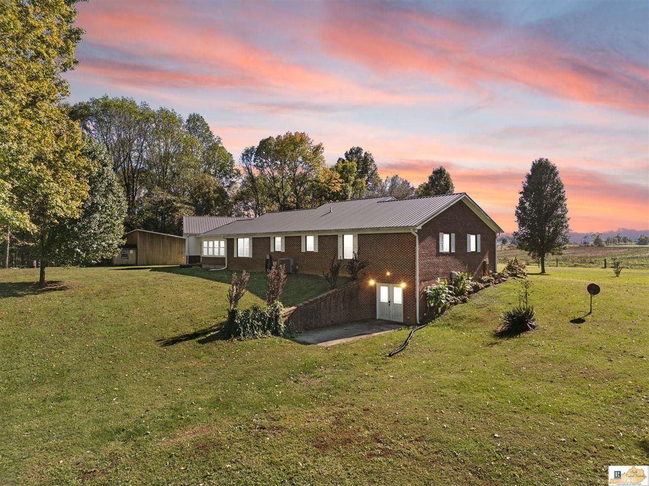 Enjoy peaceful country living just minutes from Holmes Bend Marina on Green River Lake with this well-built brick home situated on 7.12 acres. Constructed in 2009, this spacious 3-bedroom, 2.5-bath residence has been exceptionally maintained. Recent improvements include a new metal roof (2022), new Carrier HVAC unit (2022), and new water heater (2020) giving you peace of mind for years to come. The main level features solid hardwood floors and an open-concept layout where the living room flows seamlessly into the kitchen and dining area. The kitchen has solid oak cabinetry and been refreshed with new quartz countertops, and stainless-steel appliances, combining style and function. The large primary suite offers a private ensuite bath with a newer walk-in shower for easy accessibility. Downstairs, the full walk-out basement includes a half bath and provides excellent potential to finish to your liking. A 28.5x36 attached garage offers concrete flooring, electric, and a durable metal interior for low maintenance. The garage connects to the home via a spacious breezeway enclosed with vinyl windows (not counted in square footage) a perfect space for family gatherings or relaxing while taking in the views. Additional improvements include a like-new 24x30 detached garage (not yet finished with concrete or electric), a 24x36 three-bay open shed ideal for tractors or lawn equipment, and a chicken coop that remains with the property. Additionally, an 18x30 carport remains with the property as well. The land itself is a true highlight - beautifully fenced with a small pond, a meandering stream, and a garden area ready for your green thumb. This property combines the serenity of the countryside with modern comfort and practical amenities. Its the perfect setup for anyone seeking a well-built home with space to enjoy the outdoors. Call today to schedule your private showing!